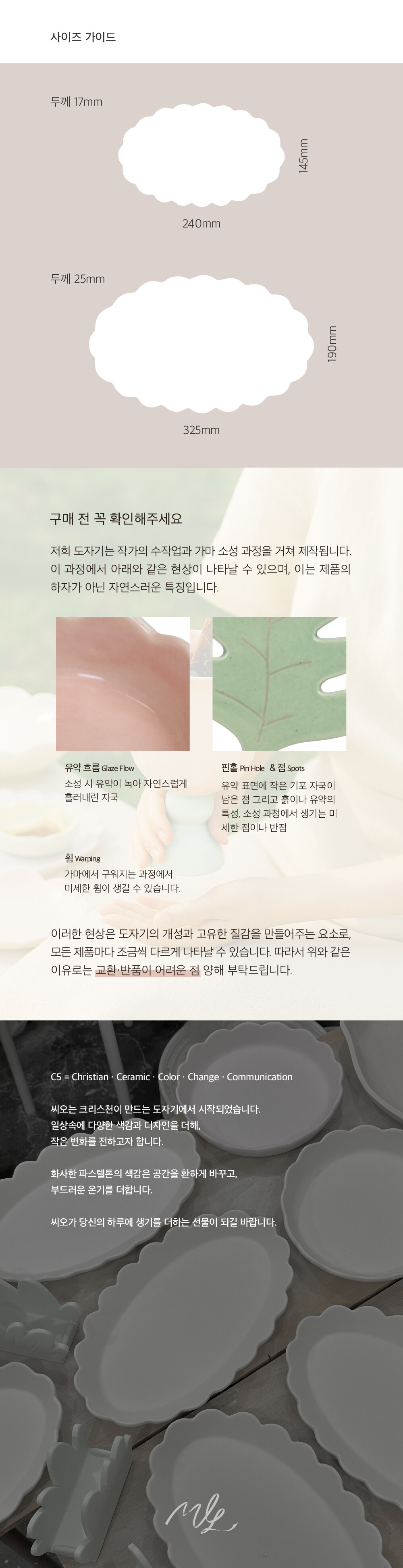 도자기의 미세한 스크래치, 유약의 흐름, 검은 점, 기포, 핀홀, 유약 안쪽의 실금, 휨이 존재할 수 있습니다.